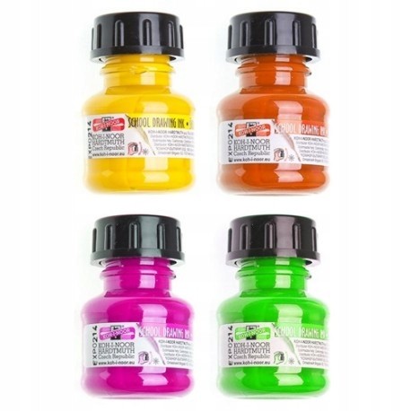 Tusze kreślarskie firmy KOH-I-NOOR odznaczają się trwałymi i żywymi kolorami odpornymi na światło. Trwale łączą się z podłożem, przeznaczone są do celów kreślarskich, artystycznych oraz ozdobnych. Nakrętka wyposażona jest w aplikator, który ułatwia nakładanie tuszu na płaszczyznę. Przed użyciem dokładnie wstrząsnąć.